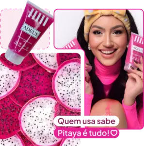 Com a pele úmida, aplique o Esfoliante de Pitaya ADEUS e massageie com movimentos circulares. Ele remove as células mortas e prepara a pele para receber os ativos. (Usar 2,3x na semana)